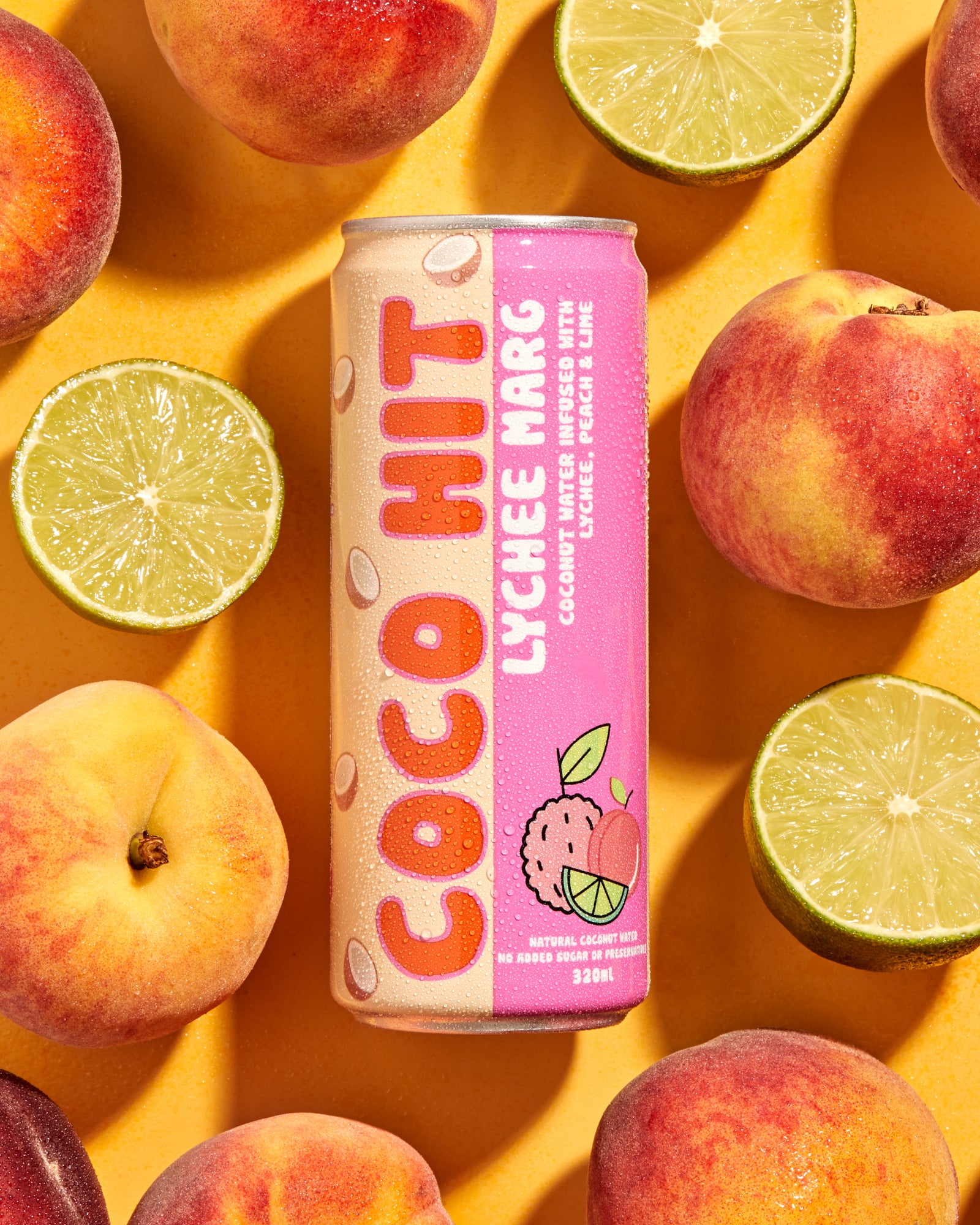 Ingredients: Pure Coconut Water 74%, Lychee Juice 15%, Lime Juice 6%, Peach Juice Concentrate 5%